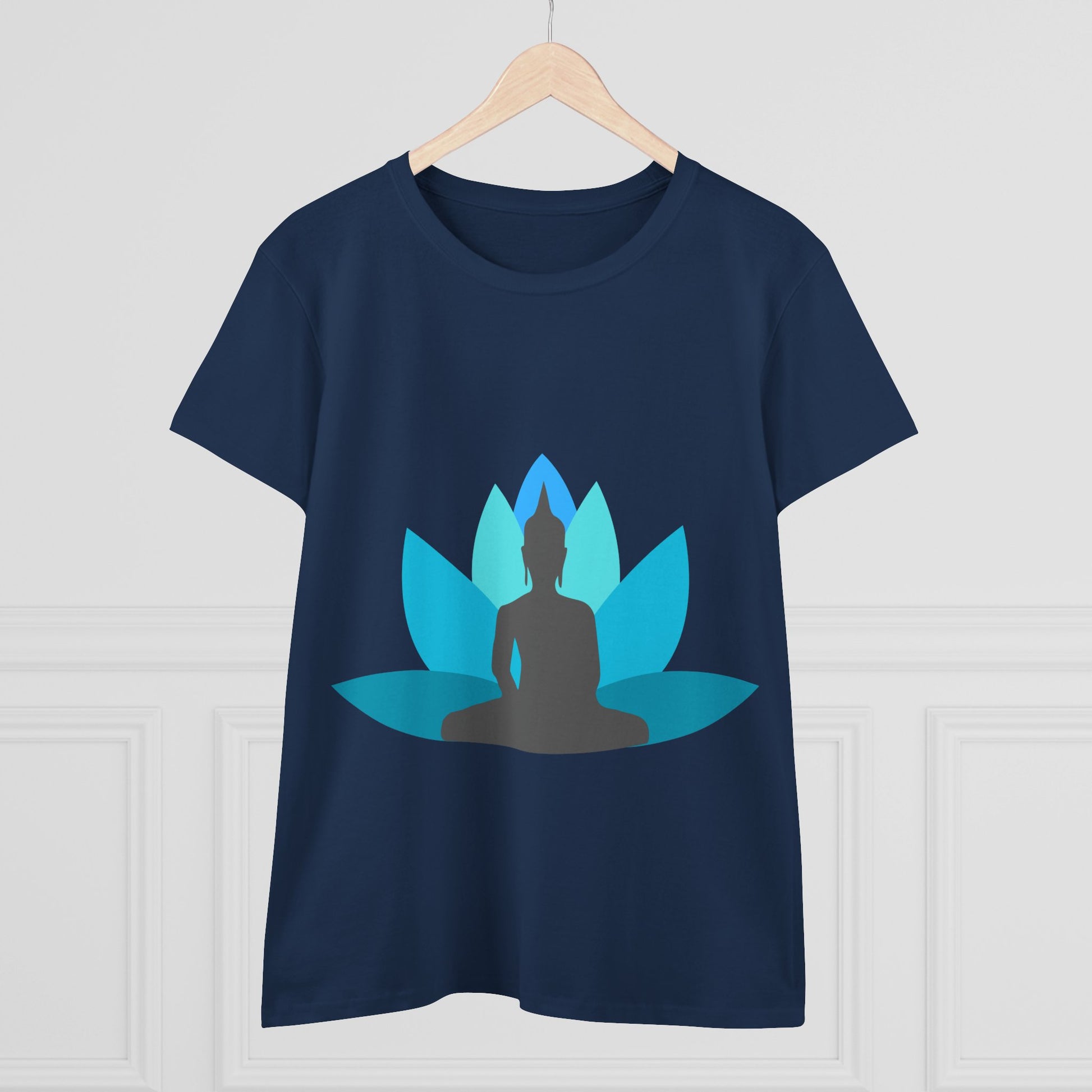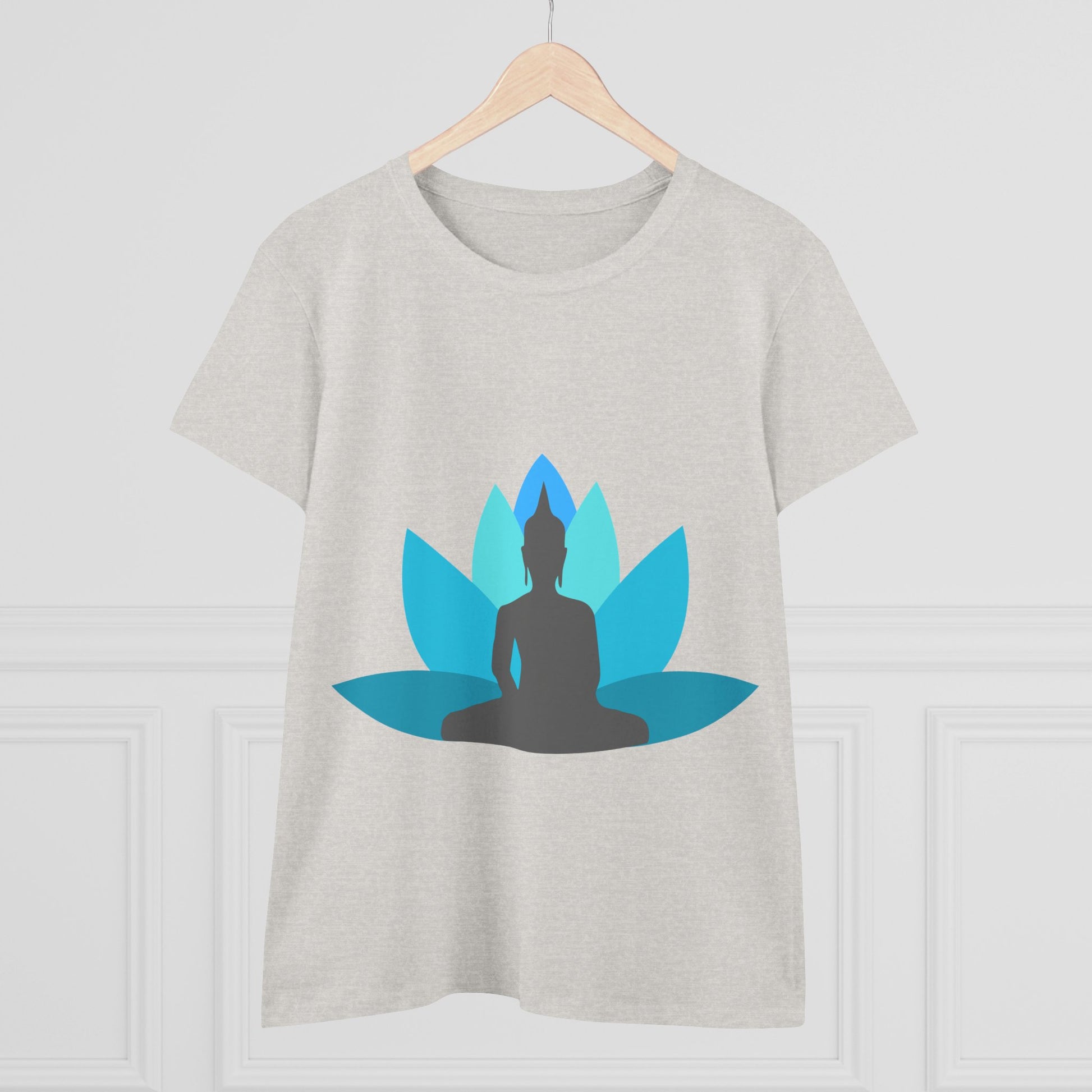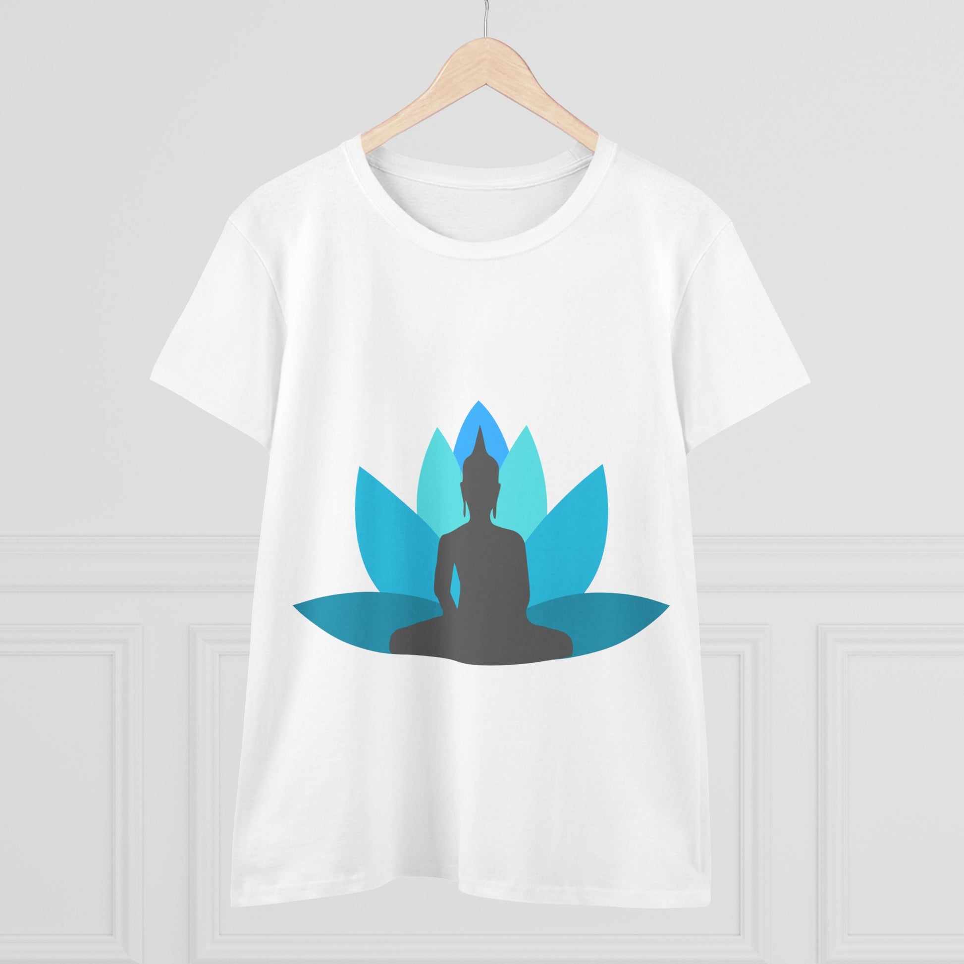 Buddha with Lotus Flower Tranquil Turquoise Women's Midweight Cotton Tee