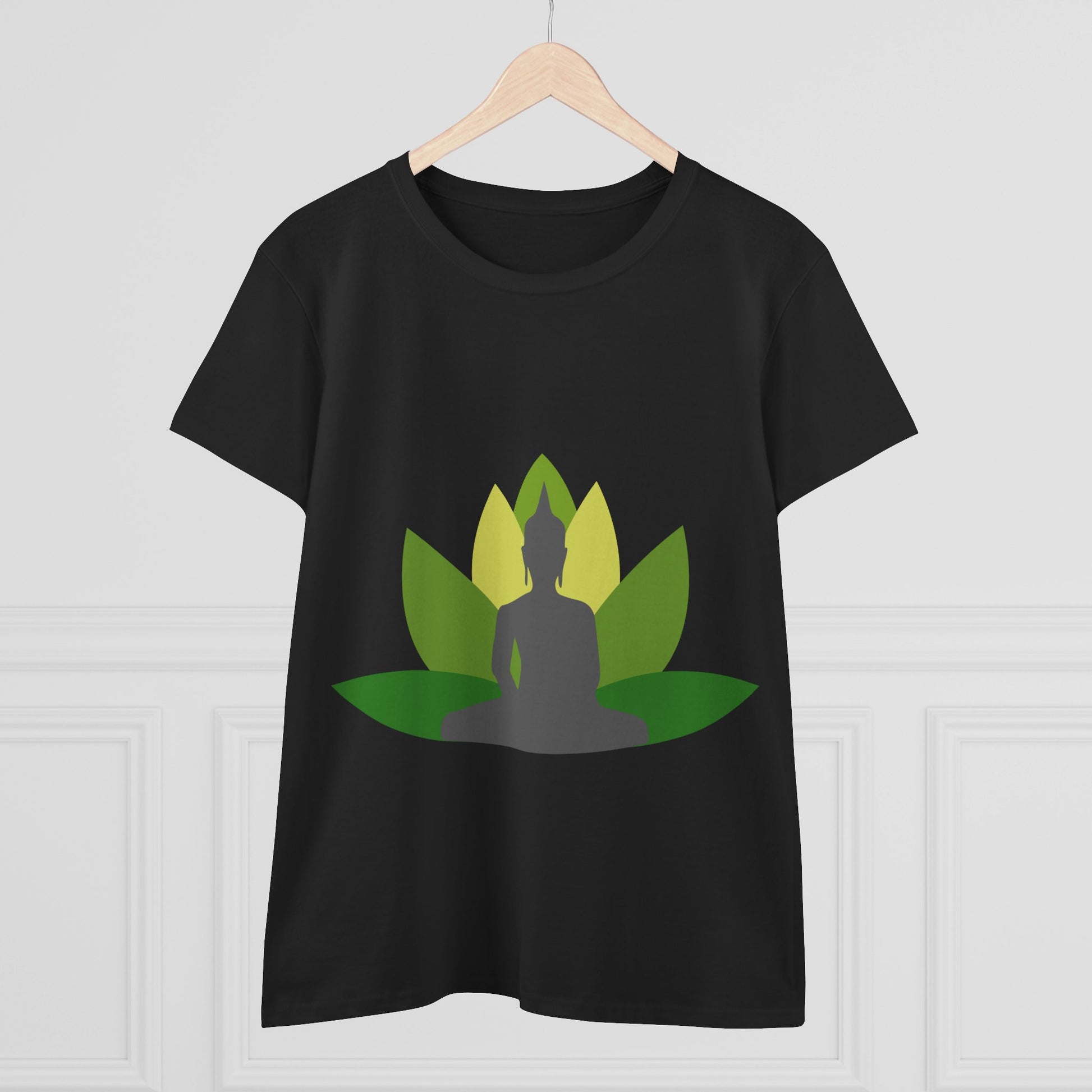 Buddha + Lotus Flower Verde Women's Midweight Cotton Tee