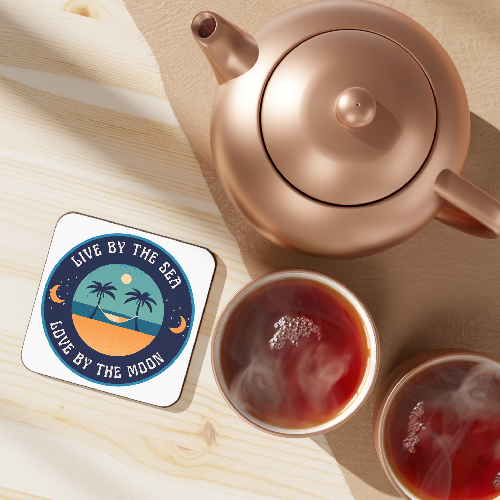 Bring coastal charm and celestial vibes into your space with our “Live by the Sea, Love by the Moon” coaster. Perfect for protecting your surfaces in style, this piece blends function with inspiration. Whether you’re sipping morning coffee, evening wine, or your favorite beachside cocktail, this coaster adds a touch of wanderlust to every sip.