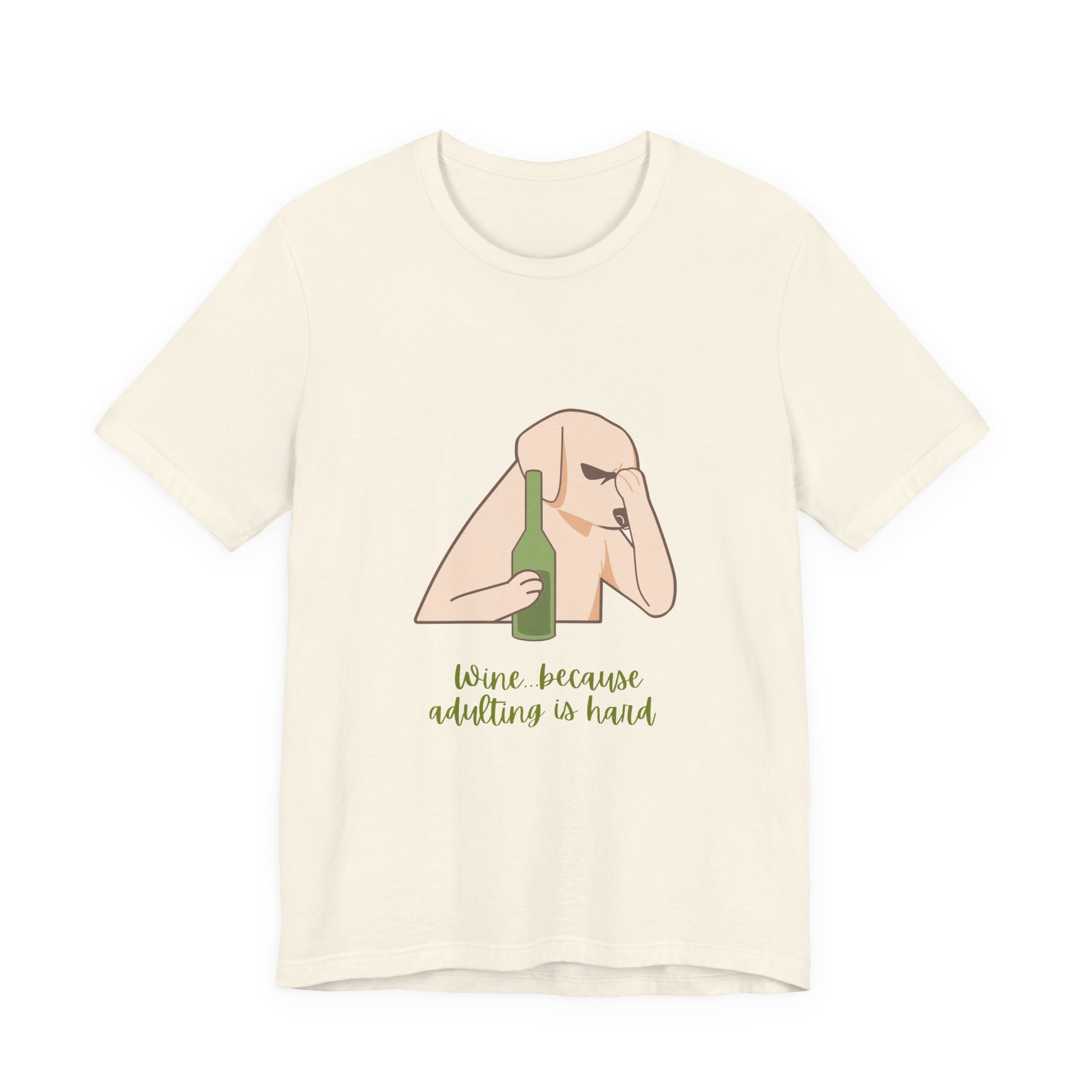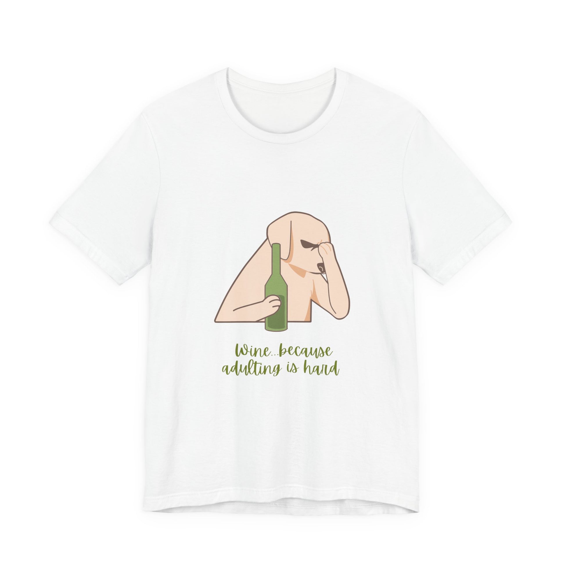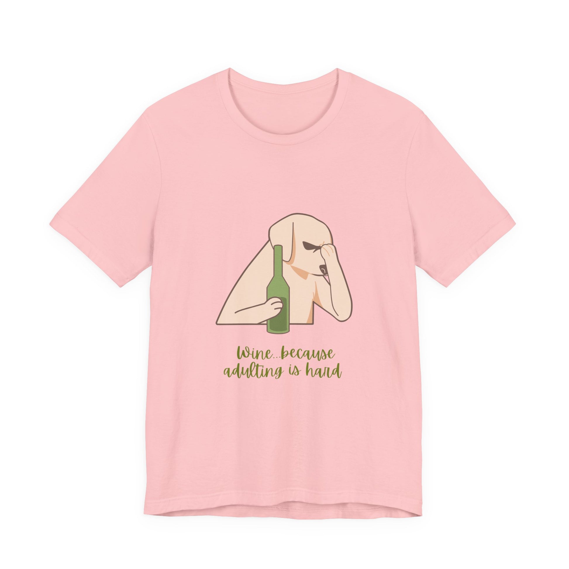 Wine...Because Adulting Is Hard Unisex Jersey Short Sleeve Tee
