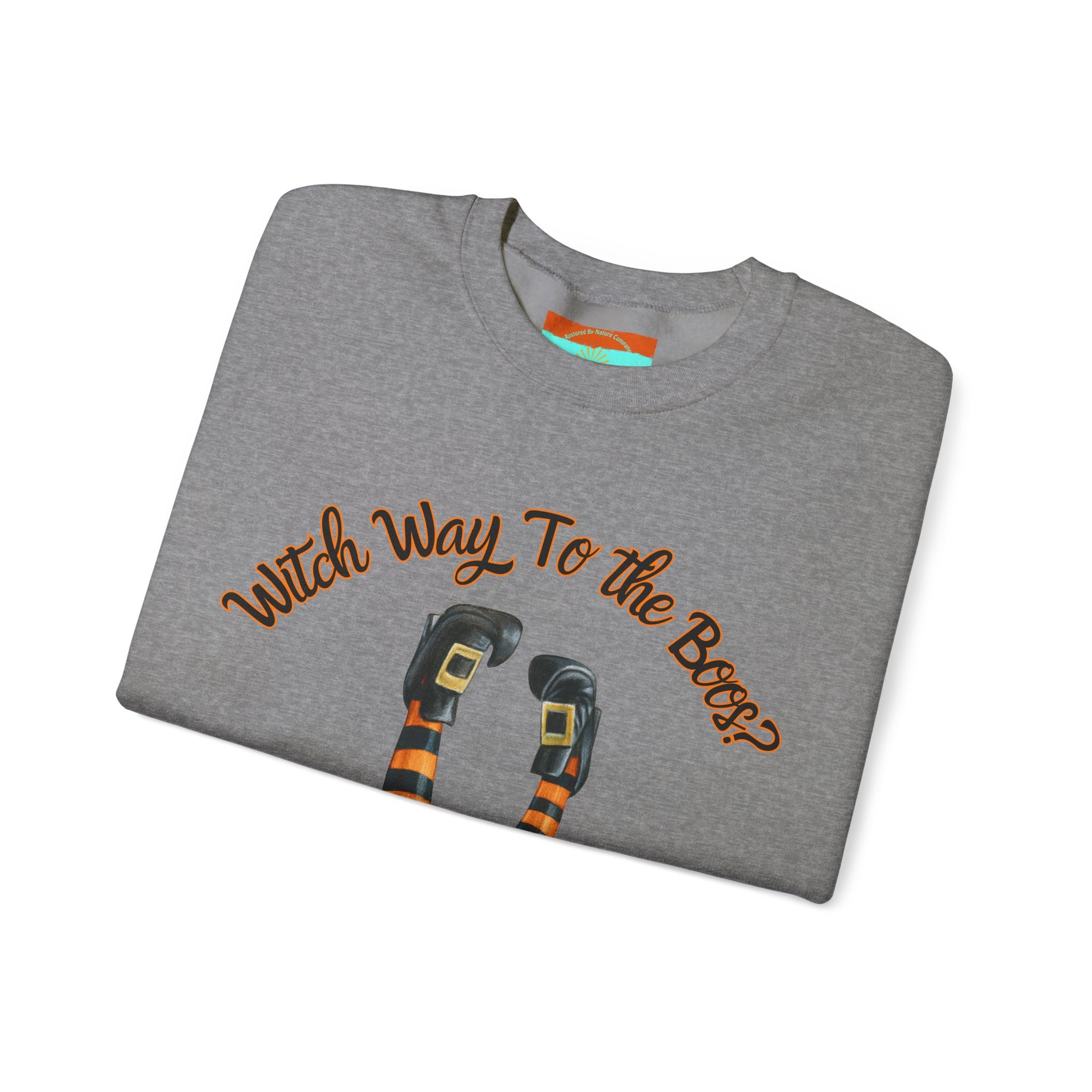 Get ready to turn heads and stir up some fun with our Witch Way To The Boos? Unisex Heavy Blend™ Crewneck Sweatshirt. Crafted for both comfort and style, it’s the ideal sweatshirt for haunted gatherings, ghostly get-togethers, or just a casual night in.